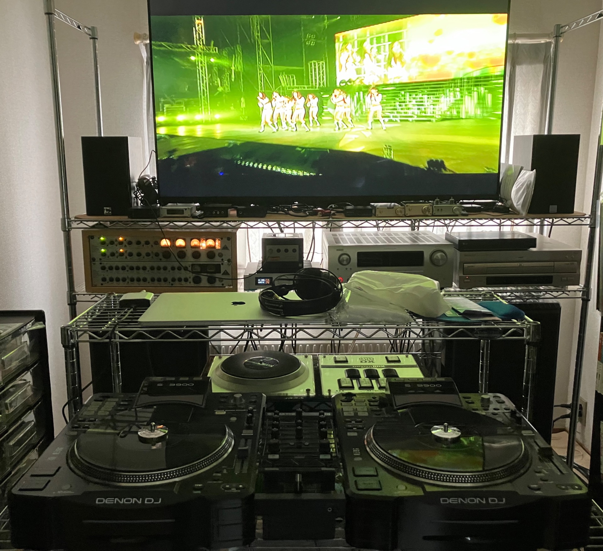 DVDだけじゃなくて、↑PC DJもセットしてますよ。さらにPC DJのキャスターを手前に引いたらビートマニアコントローラーで遊べる感じ。未成年や若かったら楽しいかもしれないが、おじさんの私的には、