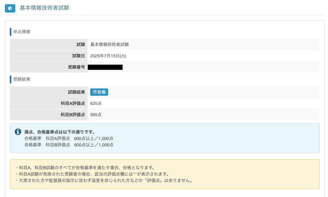 ↑基本情報技術者試験の方は次で受かるかな、と思います。